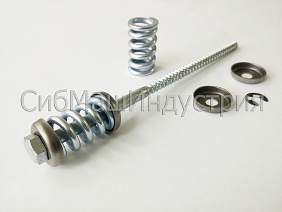 Состоит из конструкционного самореза по дереву, двух тарельчатых шайб, стопорной шайбы, пружины.