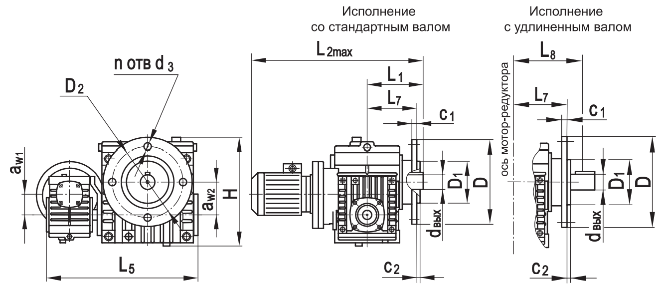 Типоразмер аW1 аW2 А А1 А2 А3 В В1 В2 L* L1* L2max L3* L4 Н Н1 с  d d 1 d2 Е dвх dвых