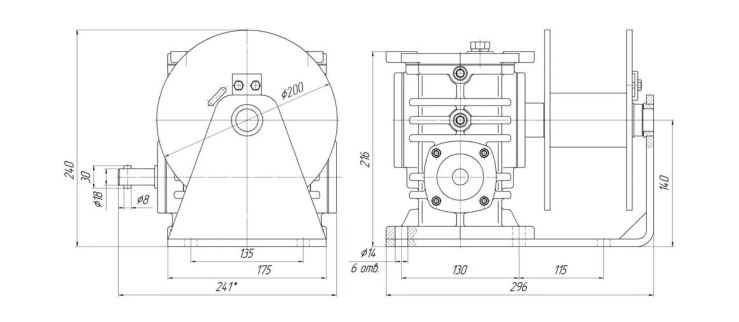Габаритные размеры лебедки 296х240х240 296х240х240 350х218х212