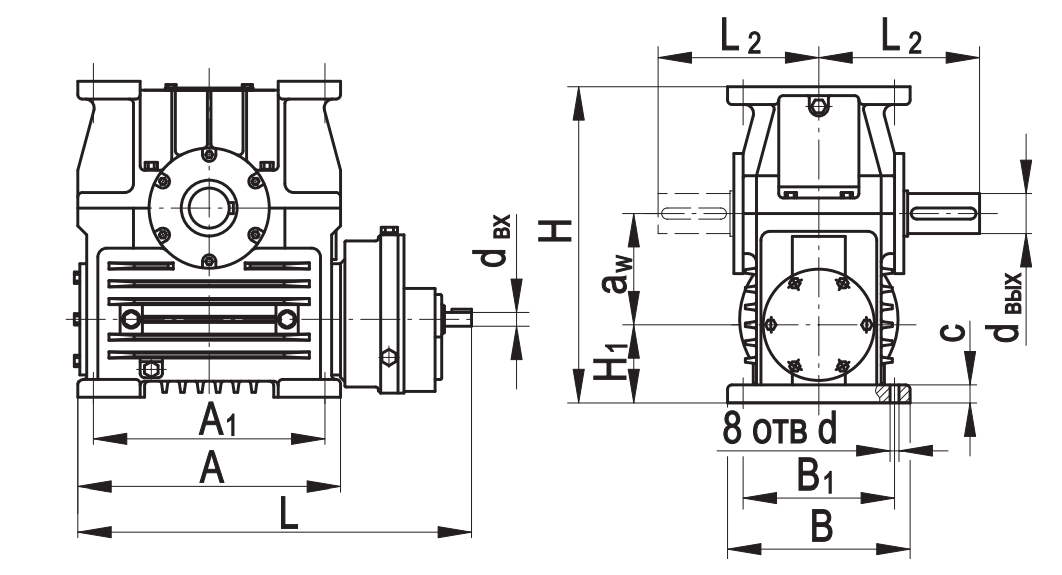 aw А А1 В B1 L L1max L2 Н H1 c d dвх dвых