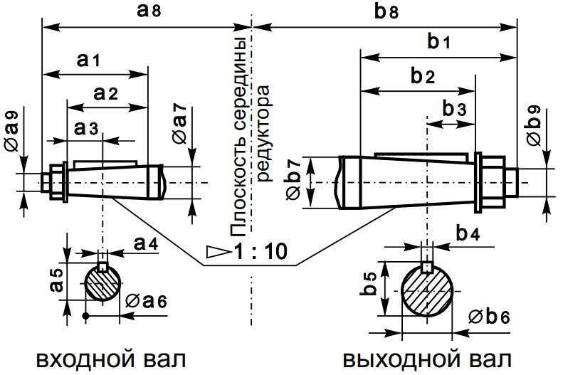 Размеры конца тихоходного вала для присоединения приборов и автоматики