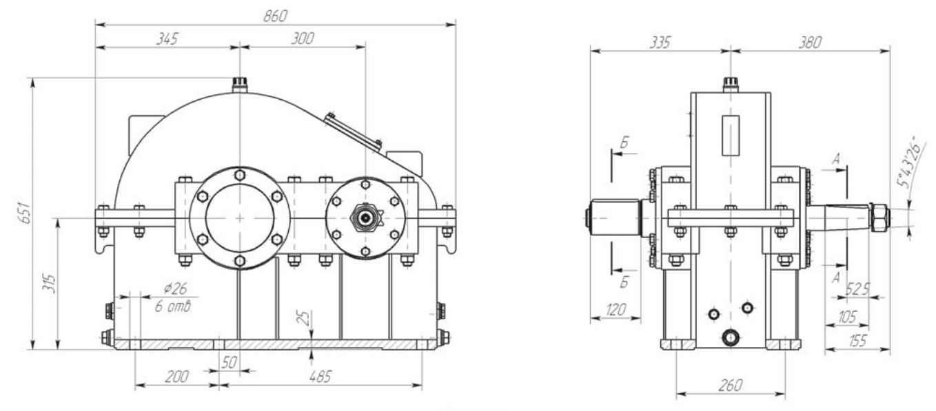 Номинальные передаточные отношения, i Номинальная частота вращения быстроходного вала, об/м Номинальный крутящий момент на тихоходном валу при повторно-кратковременном режиме (ПВ 40%), Нм  Масса, кг