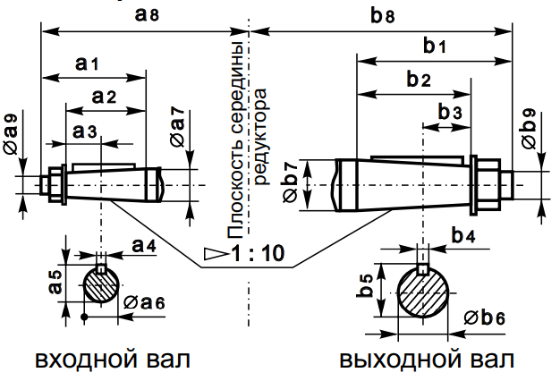 Размеры конца тихоходного вала для присоединения приборов и автоматики